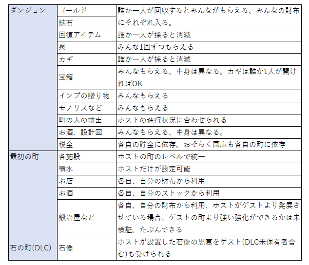 キャラクターを超えて受けられる恩恵は、街の発展(設計図やお酒含む)と、職業ごとの進行度ボーナスがある。特定の職業でダンジョン攻略を進めると、進行度に応じて肩書が変わり(偉そうになり)、職業に応じたパラメータボーナスが全キャラクターに適用される。